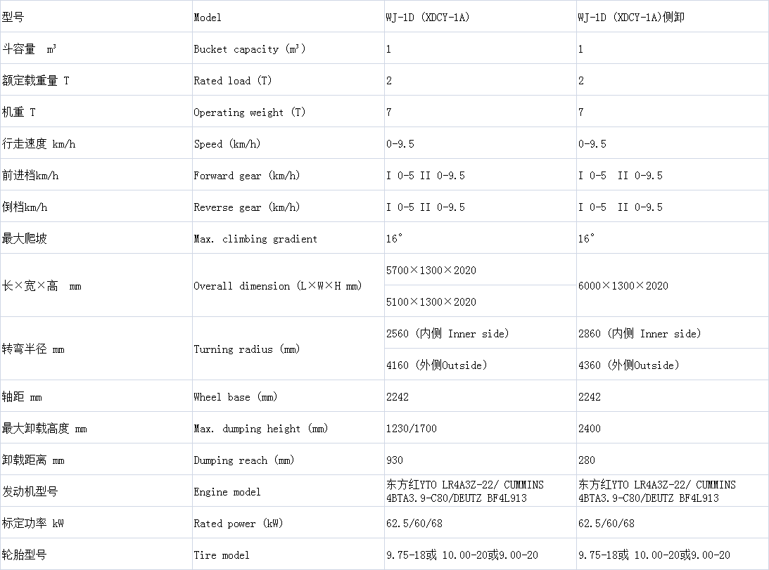 產品詳情 WJ-1D (XDCY-1A) 1.0立方內燃鏟運機 在線咨詢 產品詳情 ●動力系統采用中國一拖東方紅4105增壓發動機,儲備扭矩大,動力強勁,皮實耐造,適應井下高溫、潮濕等惡劣工況。 ●傳動系統采用山推280型液力變矩器、20型動力換檔變速箱,并匹配大速比礦山機械濕式制動橋,實現低速大扭矩,使一檔鏟裝更有力,鏟斗易于裝滿,作業效率高;維護方便,配套件更易采購。 ●工作系統采用先導操控,使操作更加簡單,工作效率更高。 ●采用液壓轉向,雙轉向油缸,轉向更平穩。 ●電氣系統經過防水、防潮設計,適應井下潮濕工況。 ●發動機進氣系統采用油浴式空氣濾清器,取代普通的紙質空氣過濾器(紙質濾芯會因進氣潮濕而變形堵塞,失去過濾效果),無需更換濾芯。 ●尾氣凈化系統采用水過濾裝置+氧化催化器,實現雙級過濾,尾氣以水霧的型式排出并快速沉降到地面,大大降低空氣污染,保護巷道環境及駕駛員身心健康。 ●行車制動為多盤濕式制動,制動安全可靠。 ●整車機架鋼板加厚,鋼性增強,鏟斗主板采用舞鋼生產的耐磨500特鋼鋼板,經久耐用,使用壽命更長。 ●采用9.75-18光面耐磨防穿刺橡膠輪胎。 ●整機長度≤5.7米,整機寬度≤1.3米,整機高度≤2.0米。 ●整機寬度1.3米,結構緊湊、操作方便,可進行鏟、裝、運、卸一體作業,作業功效高,適合回采出礦和巷道掘進出碴,以及工作場地和道路的修筑平整、材料運輸等輔助作業。